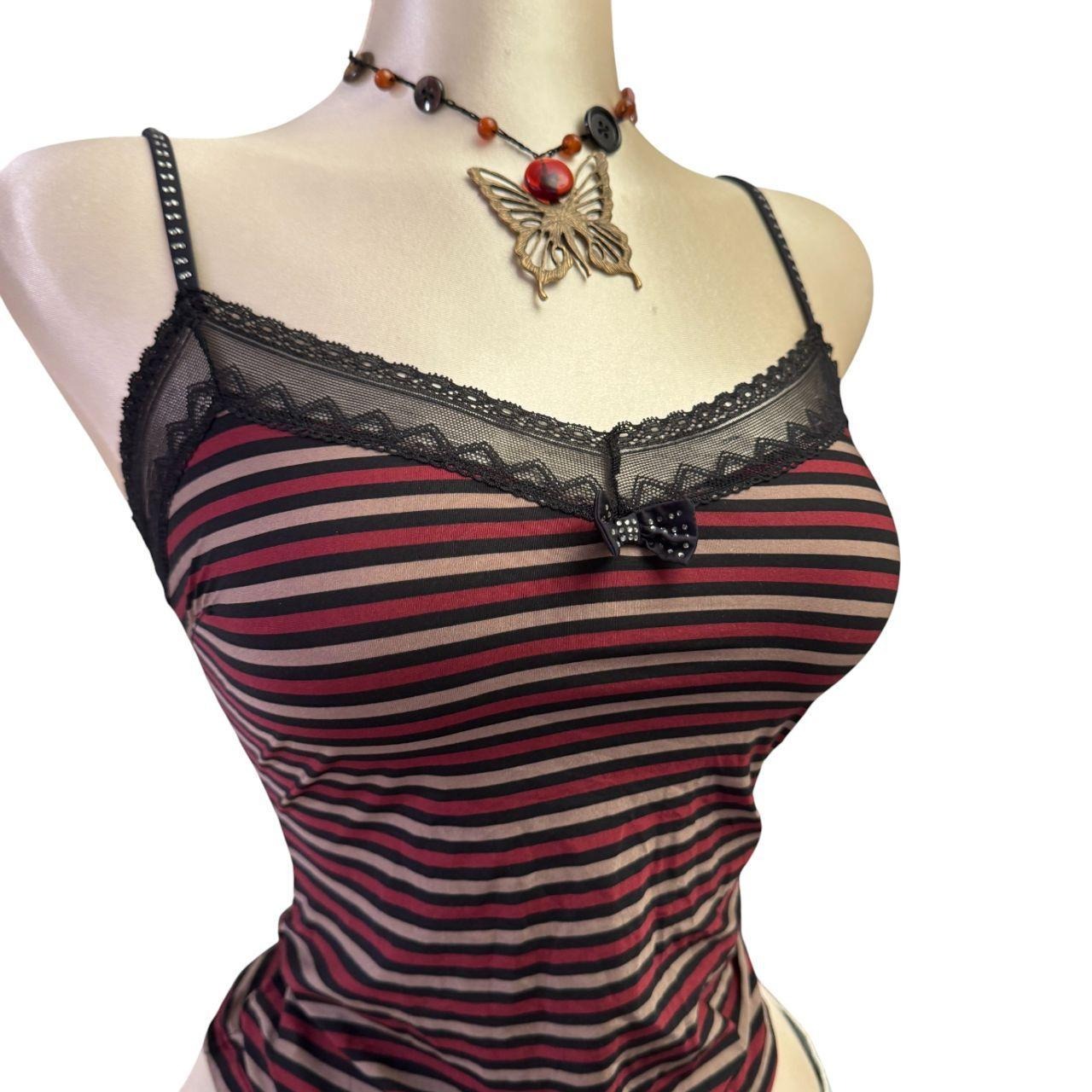 90s Vintage Black Red Striped V-neck Tank Top [XS]