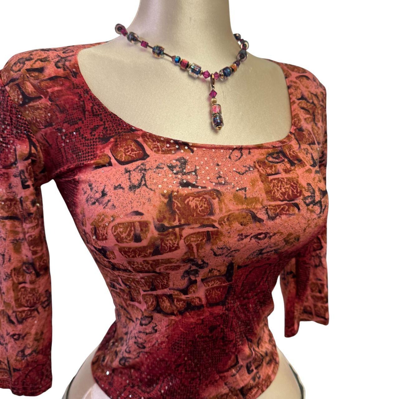 90s Vintage Pink Snakeprint Sequin Top [S]