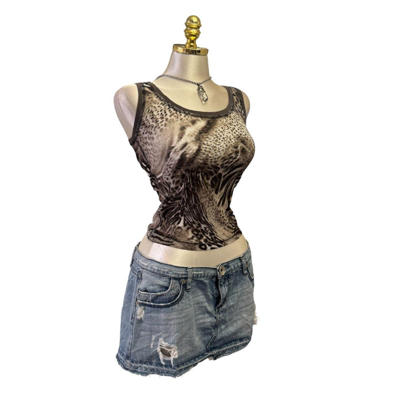 Y2K Vintage Black Beige Animal Print Sequin Top