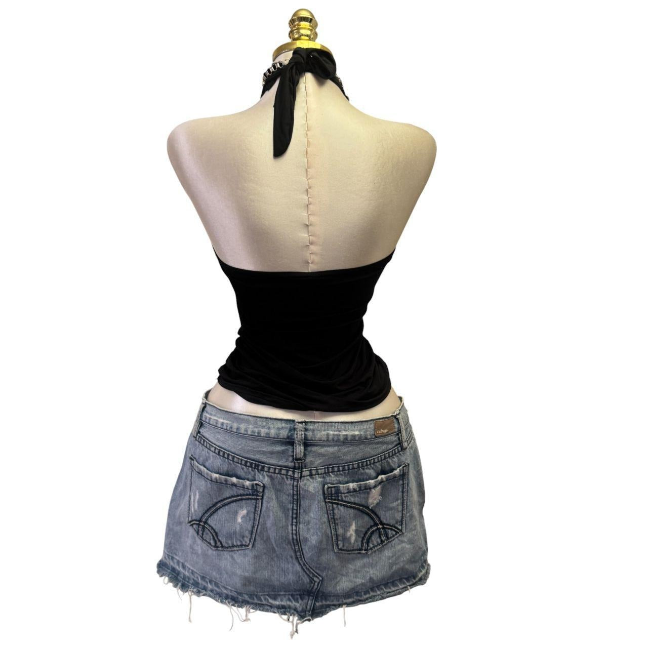 Y2K Vintage Black Halter Ruched Top [S]