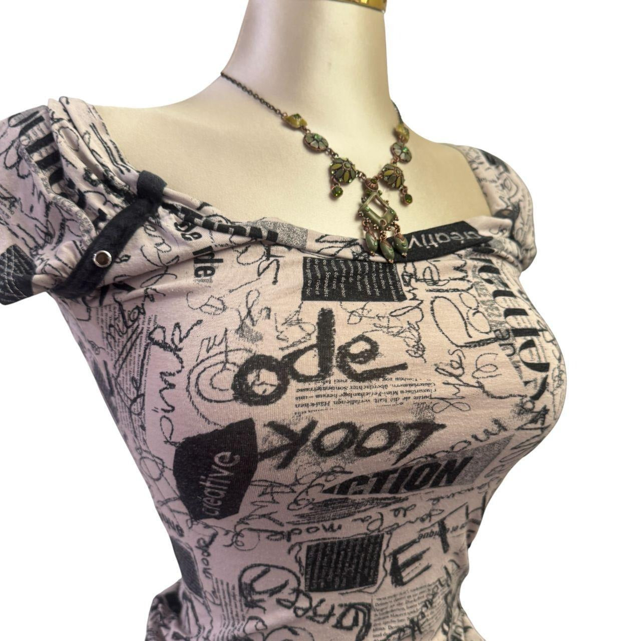Y2K Vintage Black Light Grey Graphic Top [S]