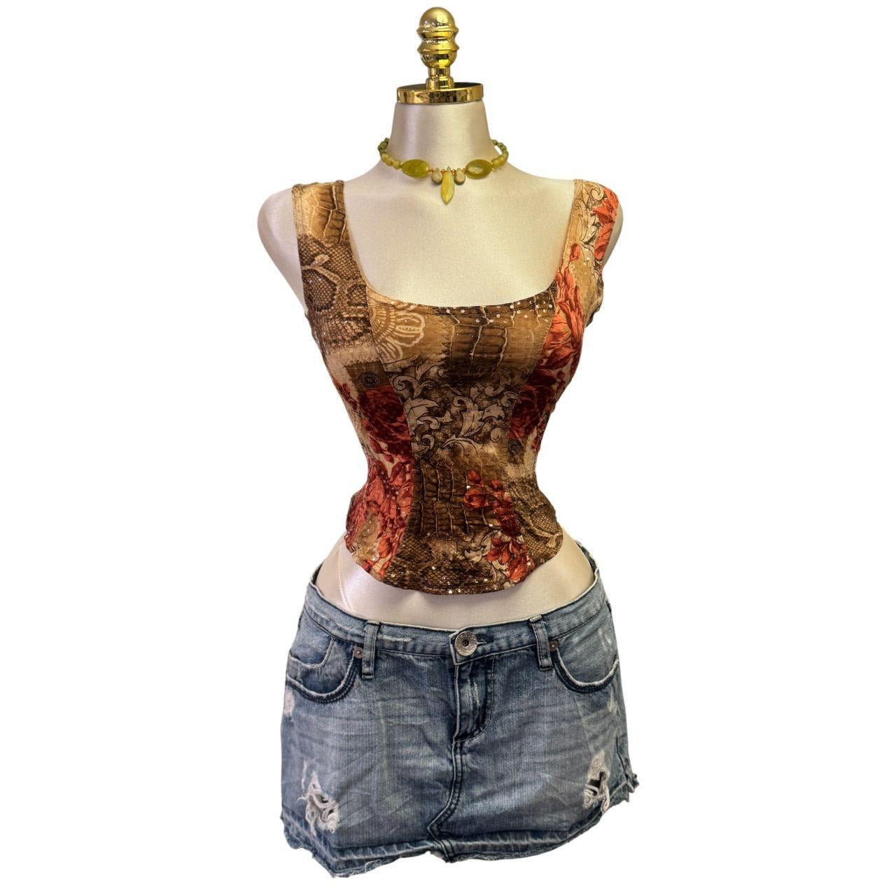 Y2K Vintage Brown Flower Sequin Tank Top [S]
