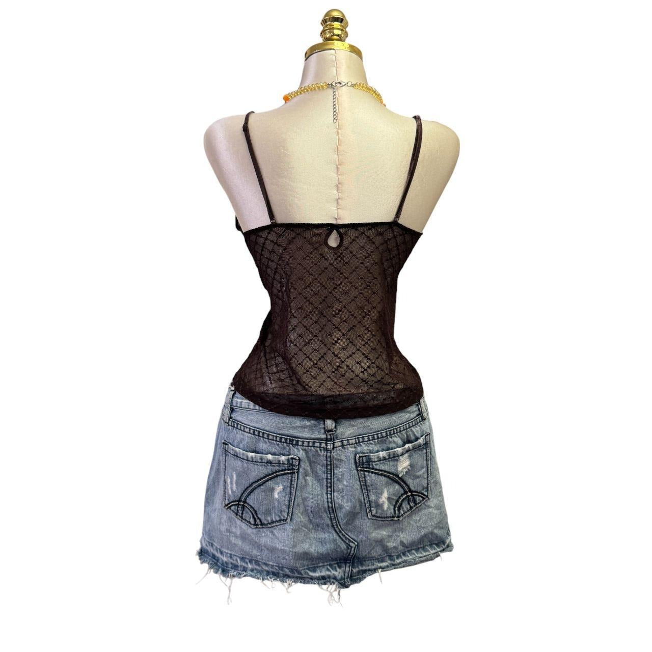 Y2K Vintage Brown Lace Sheer Tank Top [M]