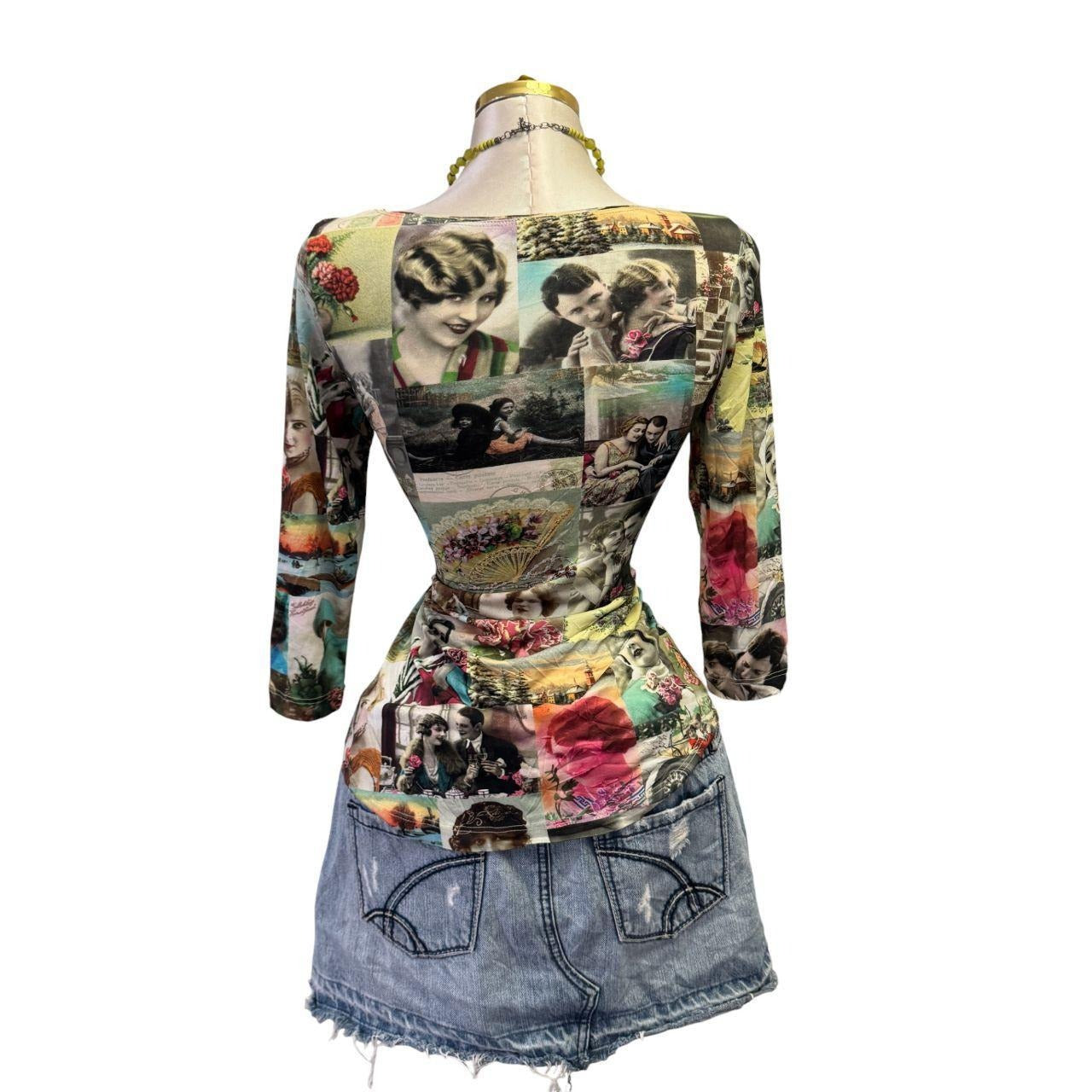 Y2K Vintage Green Graphic Faces Lovers Top [S]