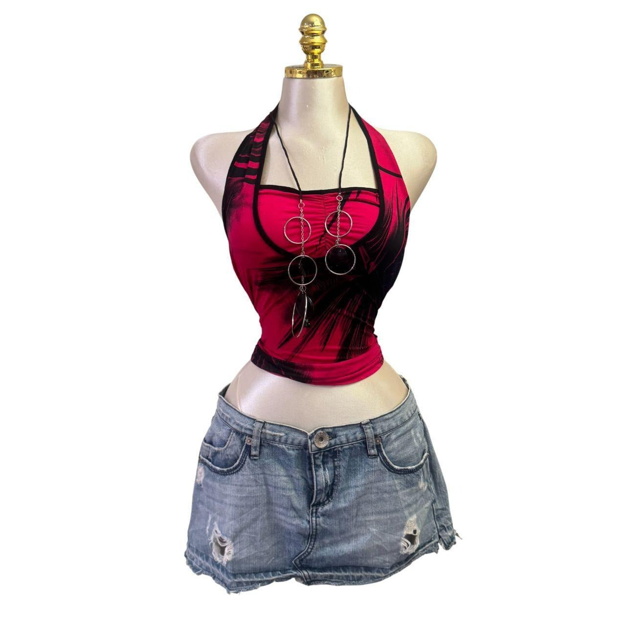 Y2K Vintage Pink Black Necklace Halter Top [S]