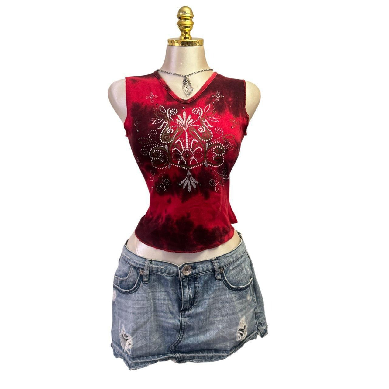 Y2K Vintage Red Tie Dye Glitter Top [S]