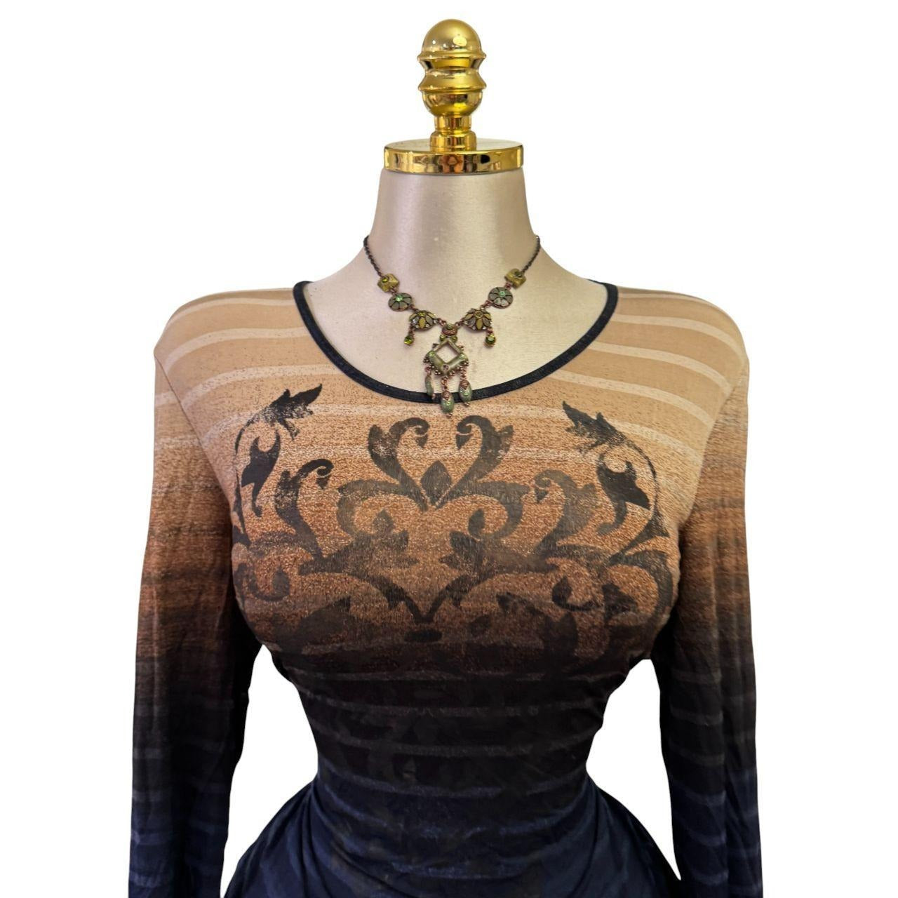 90s Vintage Brown Black Ombre Striped Long Sleeve Top