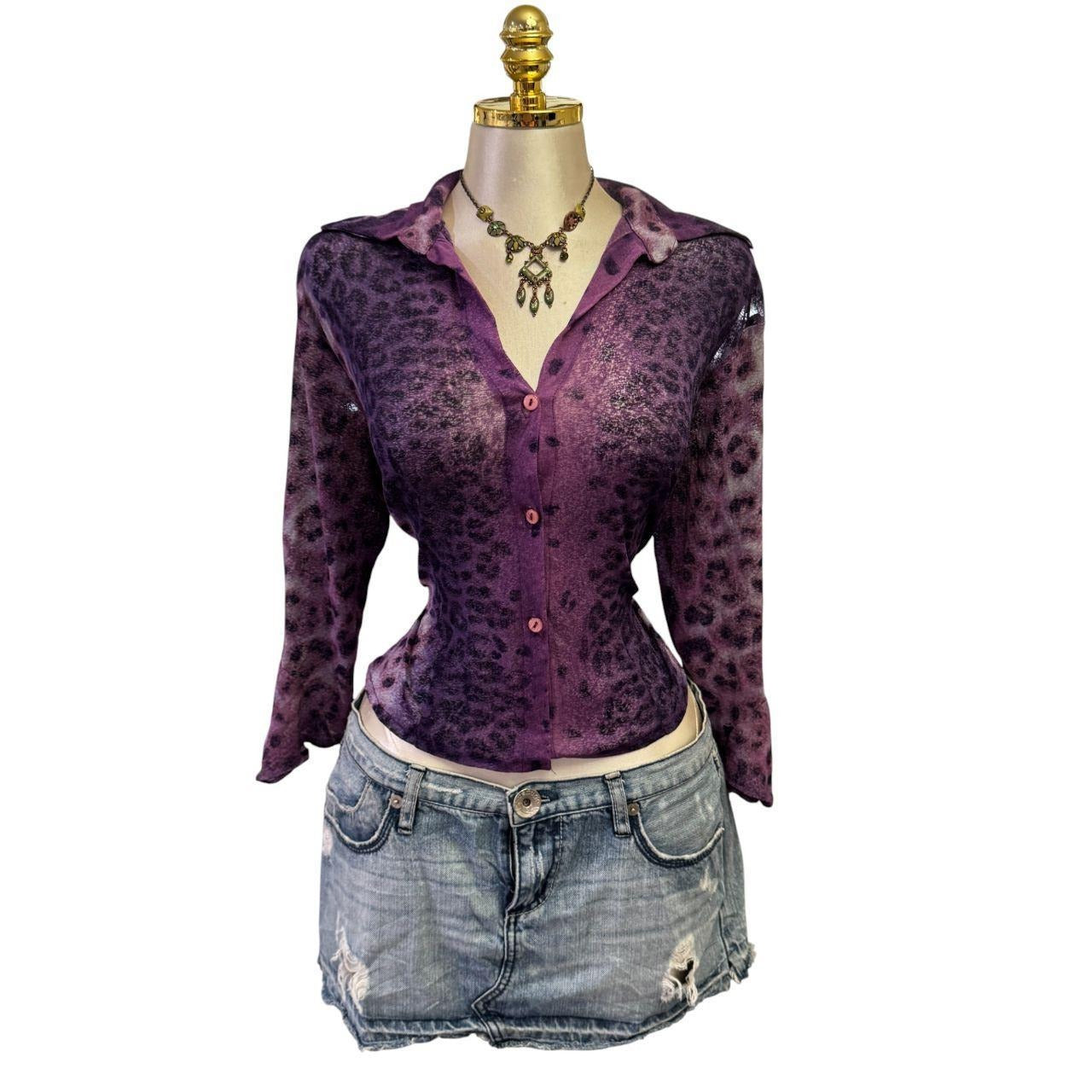 90s Vintage Purple Leopard Tie Dye Top [L]
