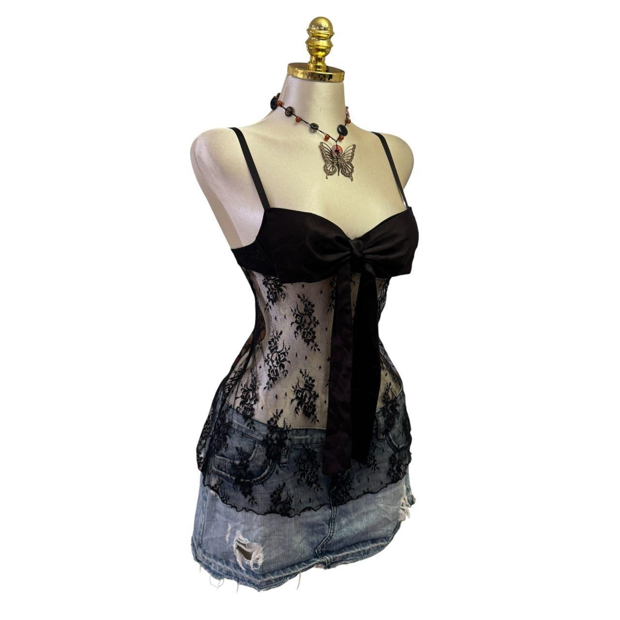 90s Vintage Black Lace Lingerie Ribbon Bra Top