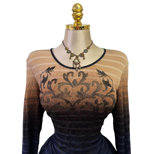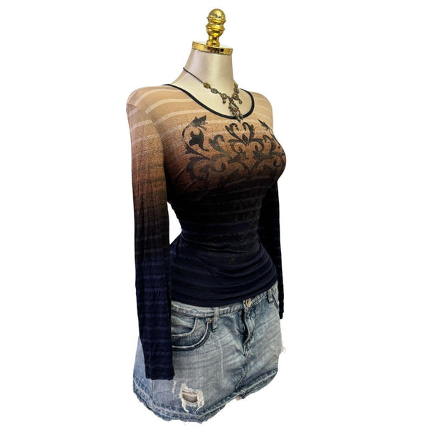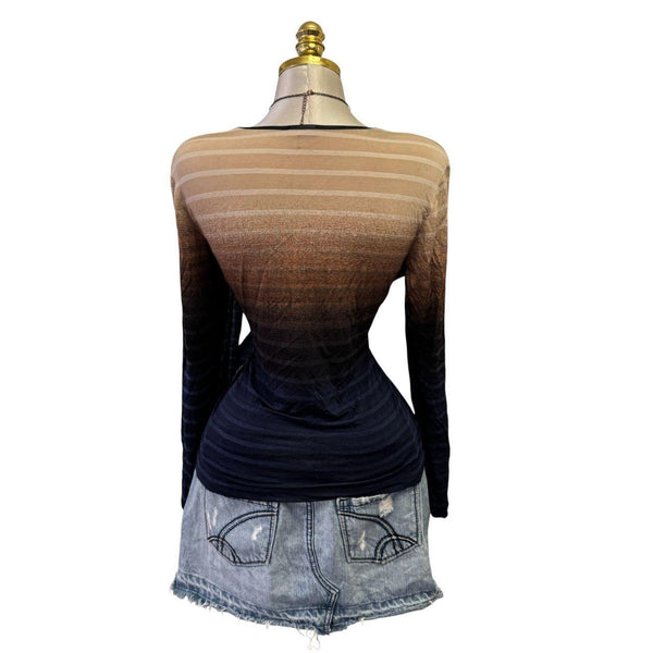[B#19-6][OCT25]90s Vintage Brown Black Ombre Striped Long Sleeve Top***imported from the UKFits Size(s): large Length: 22 in Bust: 40 inSleeve: 23 inWaist: inExcellent ConditionStretchyPinned to fit in back only. This mannequin is small so they all have to be pinned.đź’—INSTAGRAMđź’—@thediamondhanger