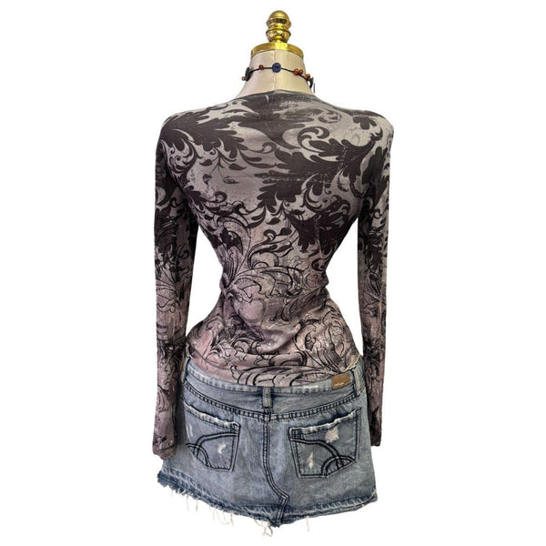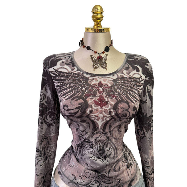 [B#19-4][OCT25]90s Vintage Gray Angel Wing Sequin Top***imported from the UKFits Size(s): large Length: 22 in Bust: 42 inSleeve: 23 inWaist: inExcellent ConditionStretchyPinned to fit in back only. This mannequin is small so they all have to be pinned.đź’—INSTAGRAMđź’—@thediamondhanger