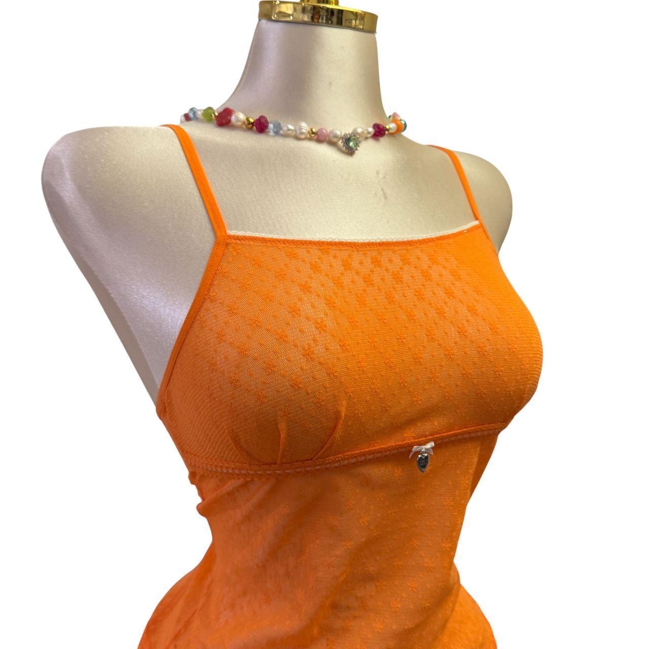 90s Vintage Orange Mesh "Edc" Heart Charm Tank Top