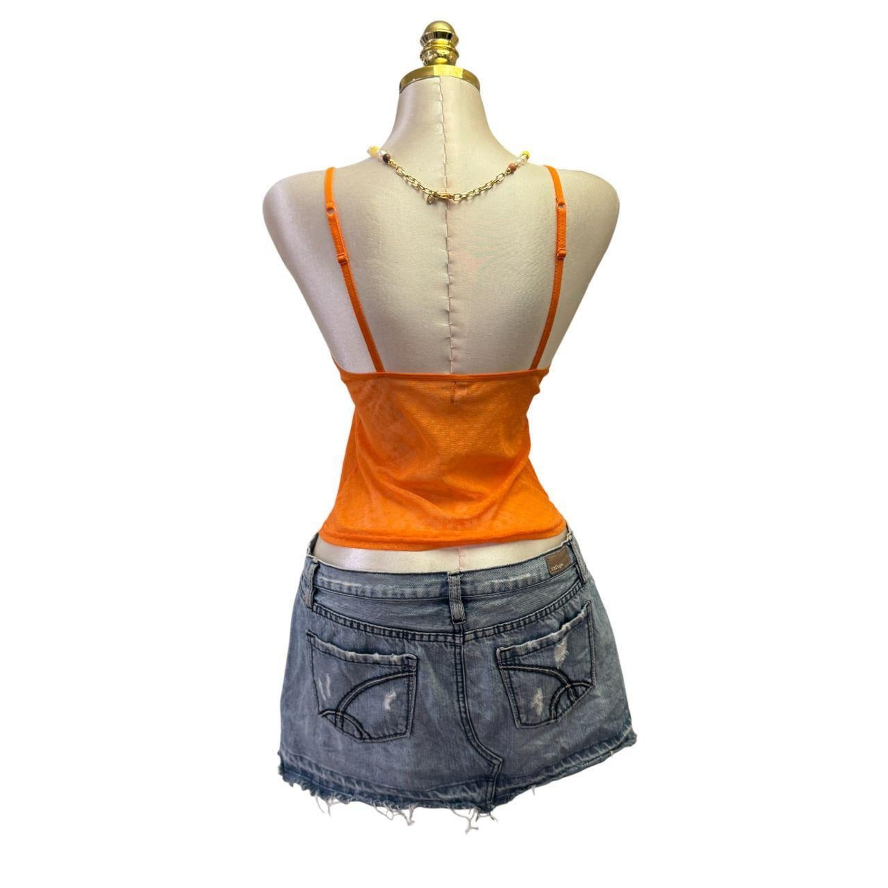 90s Vintage Orange Mesh "Edc" Heart Charm Tank Top [XS]