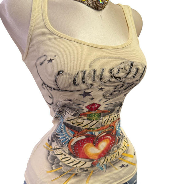 [B#7-5][OCT25]90s Vintage Yellow Tank "Naughty Girl" Top Fits Size(s): x-small Length: 24 in Bust: 26 inSleeve: inExcellent ConditionStretchySleevelessScoop NeckPinned to fit in back only. This mannequin is tiny so they all have to be pinned.***imported from the UKđź’—INSTAGRAMđź’—@thediamondhanger