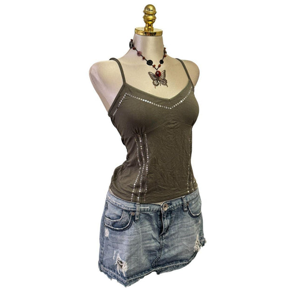 [B#22-19][OCT25]90s Vintage Olive Green W Silver Sequins Top ***imported from the UKFits Size(s): Large Length: 22 inBust: 40 inSleeve: in Waist: inExcellent ConditionStretchyPinned to fit in back only. This mannequin is small so they all have to be pinned.đź’—INSTAGRAMđź’—@thediamondhanger
