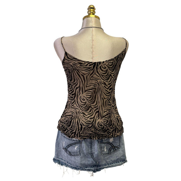 [B#16-6][OCT25]Y2K Vintage Black Gray Sheer Zebra Top***imported from the UKFits Size(s): medium Length: 24 in Bust: 40 inSleeve: inWaist: inExcellent ConditionStretchySleevelessAdjustable StrapPinned to fit in back only. This mannequin is small so they all have to be pinned.đź’—INSTAGRAMđź’—@thediamondhanger