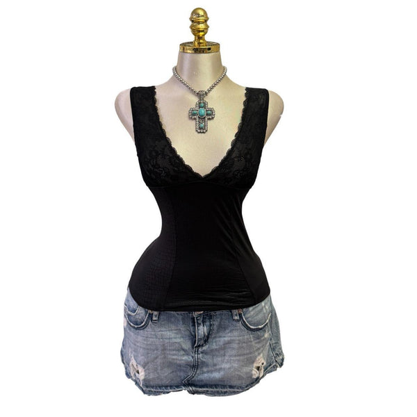 [B#12-3][OCT25]Y2K Vintage Black Lace Snakeskin Paris Top ***imported from the UKFits Size(s): medium Length: 21 in Bust: 30 inSleeve: inWaist: inExcellent ConditionStretchy V-NeckPinned to fit in back only. This mannequin is small so they all have to be pinned.đź’—INSTAGRAMđź’—@thediamondhanger