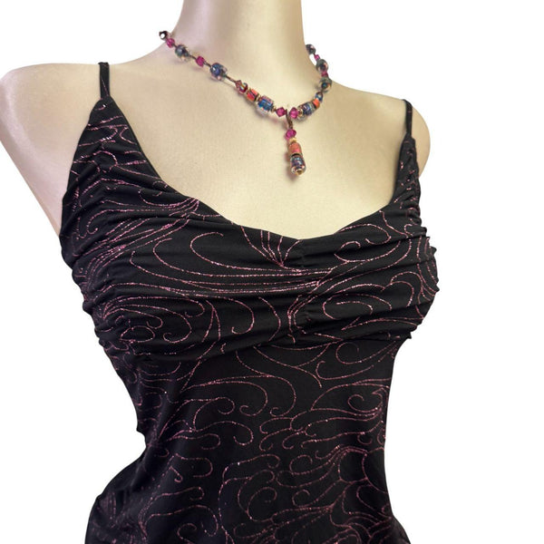 [B#5-3][OCT25]Y2K Vintage Black Pink Glitter TopFits Size(s): small Length: 23 in Bust: 32 inSleeve: inExcellent ConditionStretchySleevelessV-NeckPinned to fit in back only. This mannequin is tiny so they all have to be pinned.***imported from the UKđź’—INSTAGRAMđź’—@thediamondhanger