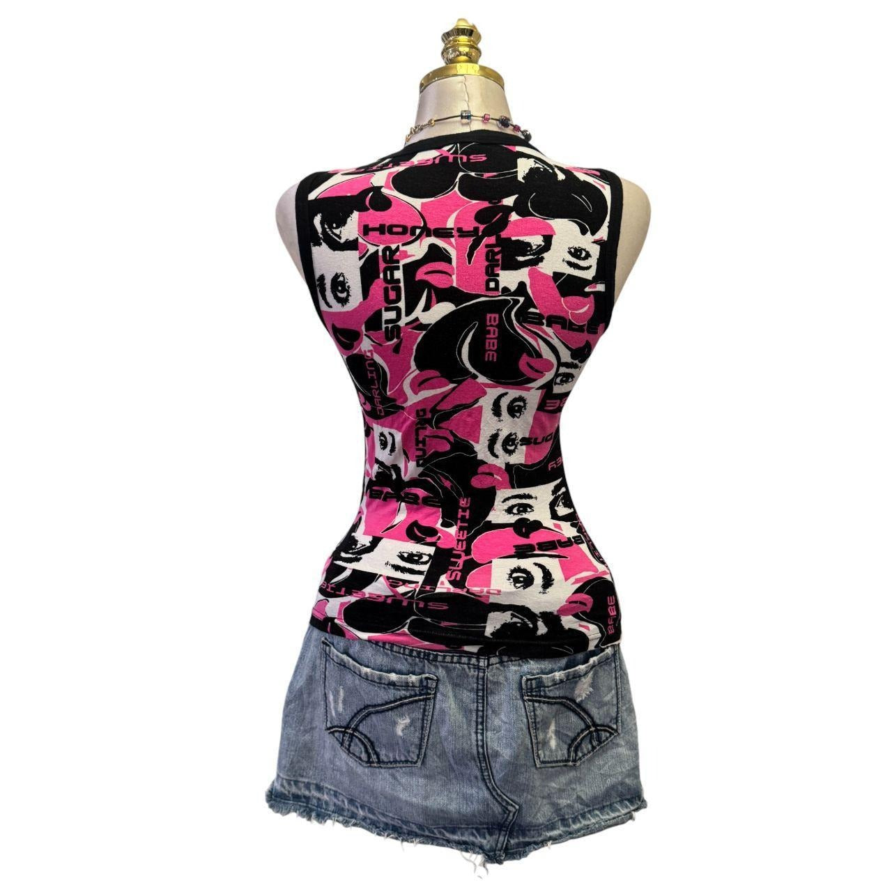 Y2K Vintage Black Pink Sugar Honey Graphic Print Top