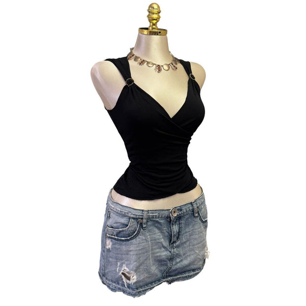 [B#3-17][OCT25]Y2K Vintage Black V-neck Embellish TopFits Size(s): small Length: 20 inBust: 32 inSleeve: inExcellent ConditionStretchySleevelessPinned to fit in back only. This mannequin is tiny so they all have to be pinned.***imported from the UKđź’—INSTAGRAMđź’—@thediamondhanger