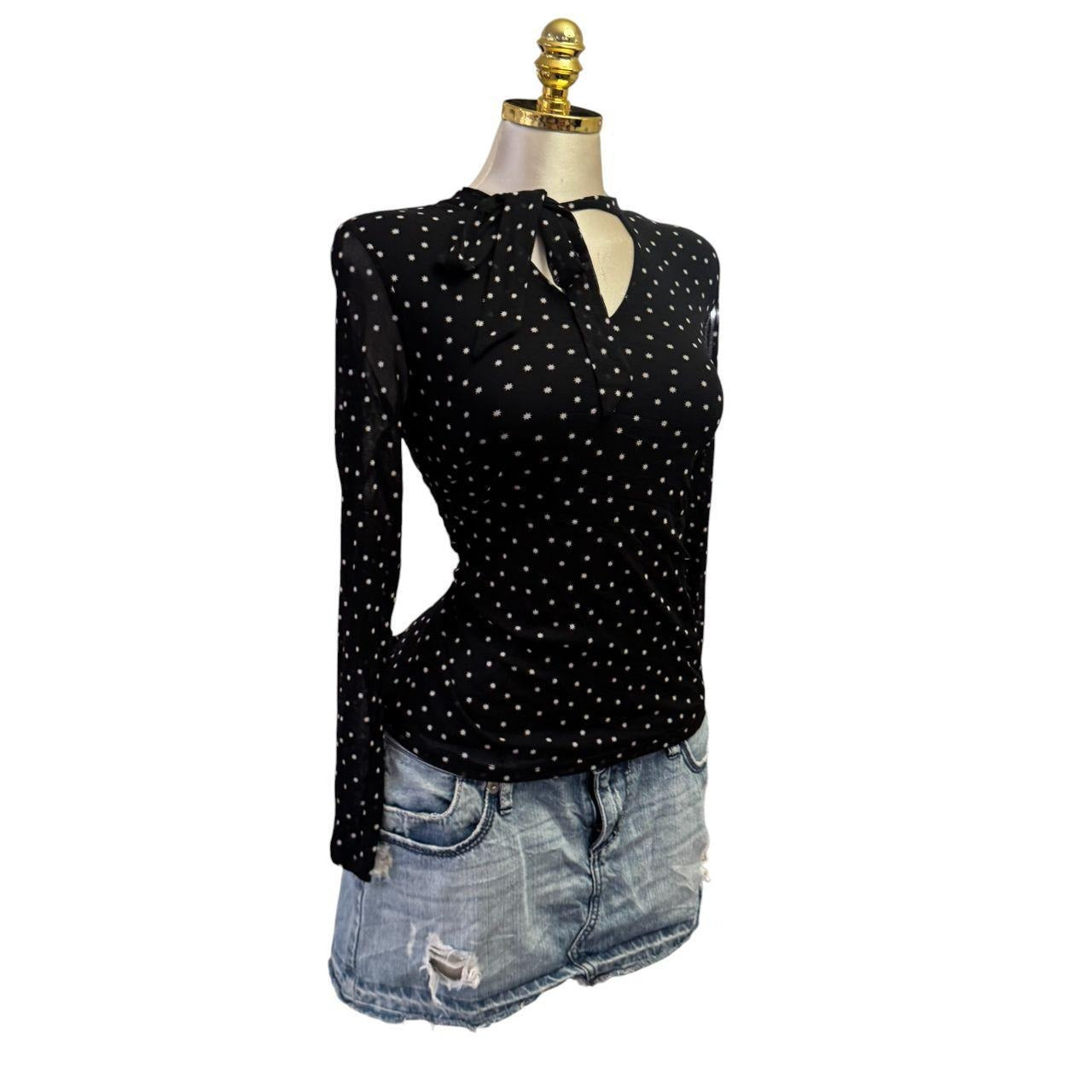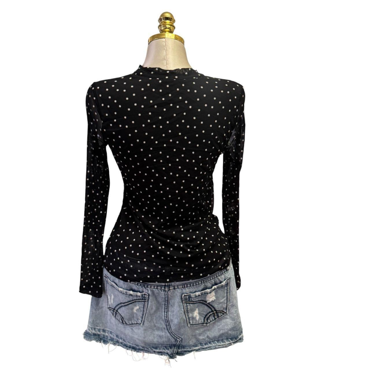 Y2K Vintage Black White Flower Polka Dot Mesh Top [M]