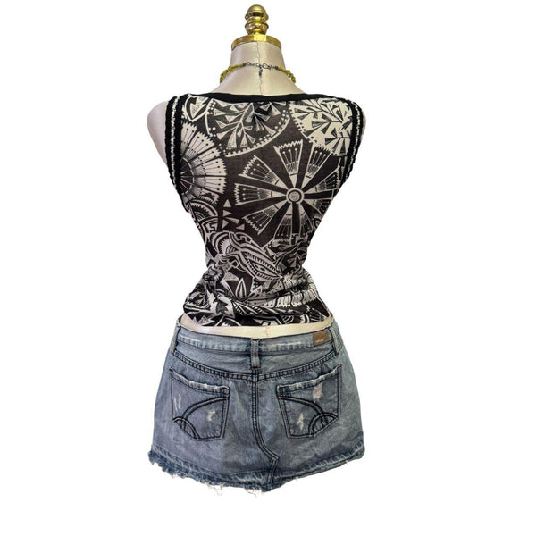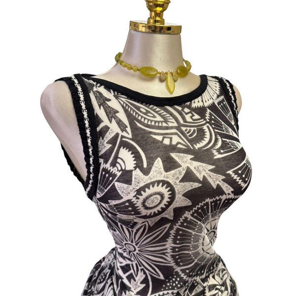 [B#11-4][OCT25]Y2K Vintage Black White Mesh Knit Sleeves Top ***imported from the UKFits Size(s): medium Length: 22 in Bust: 30 inSleeve: inWaist: inExcellent ConditionStretchyPinned to fit in back only. This mannequin is small so they all have to be pinned.đź’—INSTAGRAMđź’—@thediamondhanger