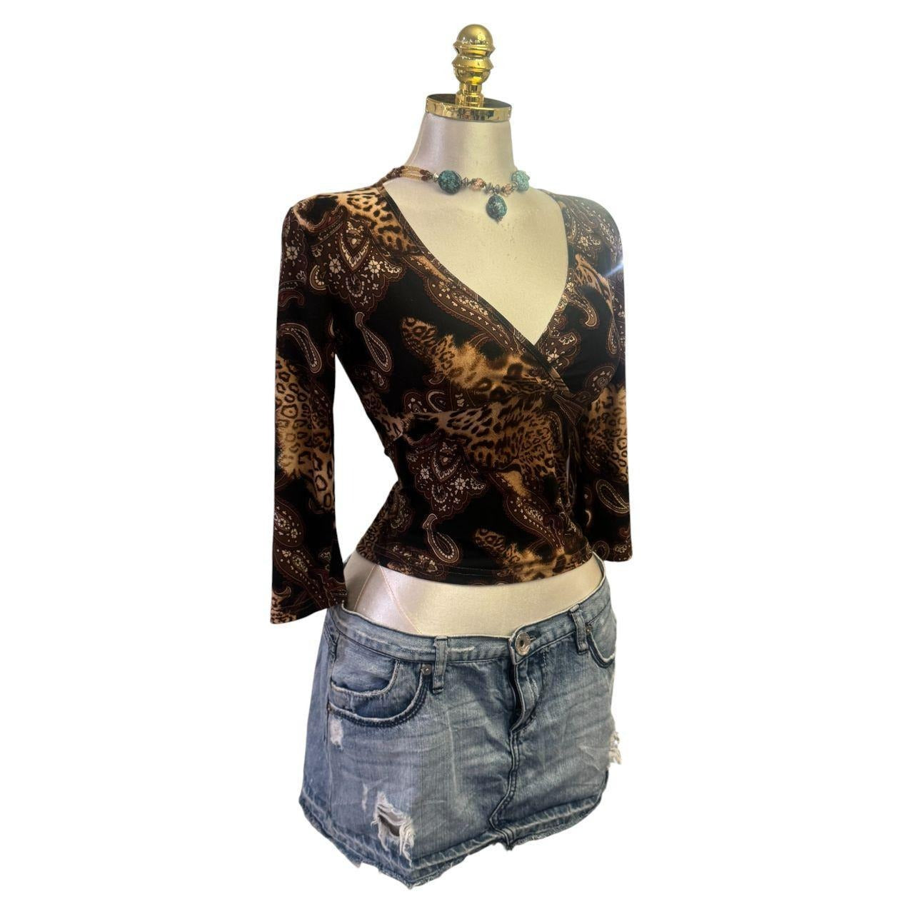 Y2K Vintage Brown Black Leopard Paisley Top [M]
