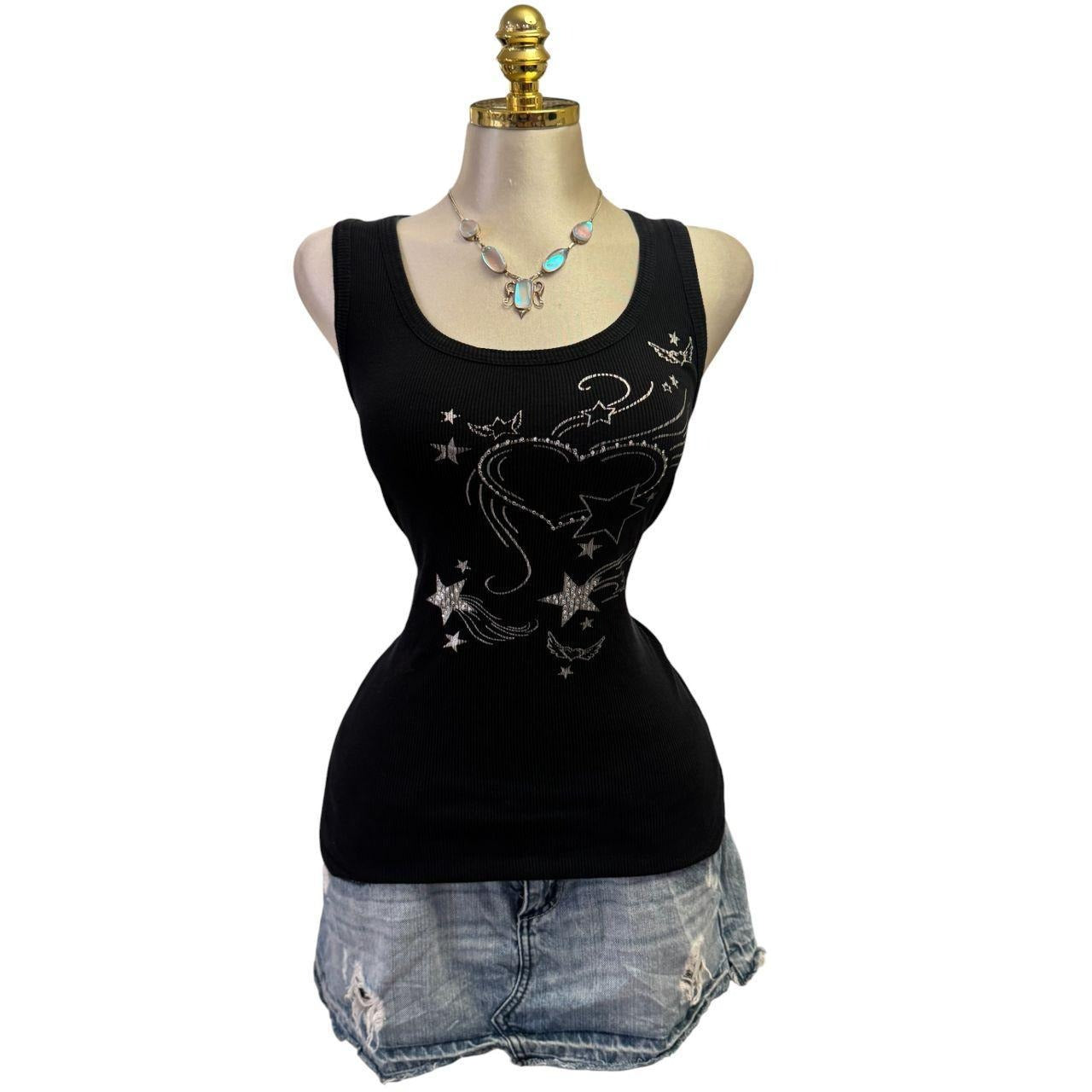 Y2K Vintage Madonna Black Silver Heart Star Sequin Top [M]