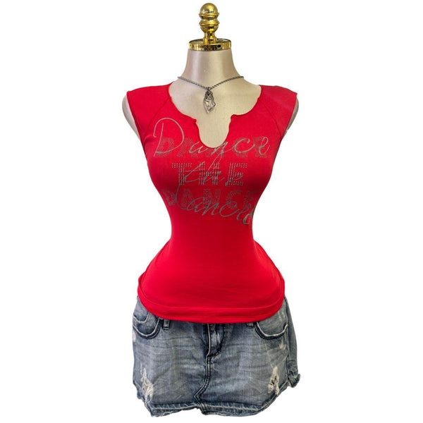 [B#17-14][OCT25]Y2K Vintage Red Dance The Dance Silver Glitter Top***imported from the UKFits Size(s): medium Length: 24 inBust: 32 inSleeve: inWaist: inExcellent ConditionStretchySleevelessPinned to fit in back only. This mannequin is small so they all have to be pinned.đź’—INSTAGRAMđź’—@thediamondhanger